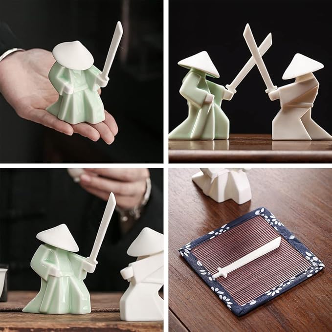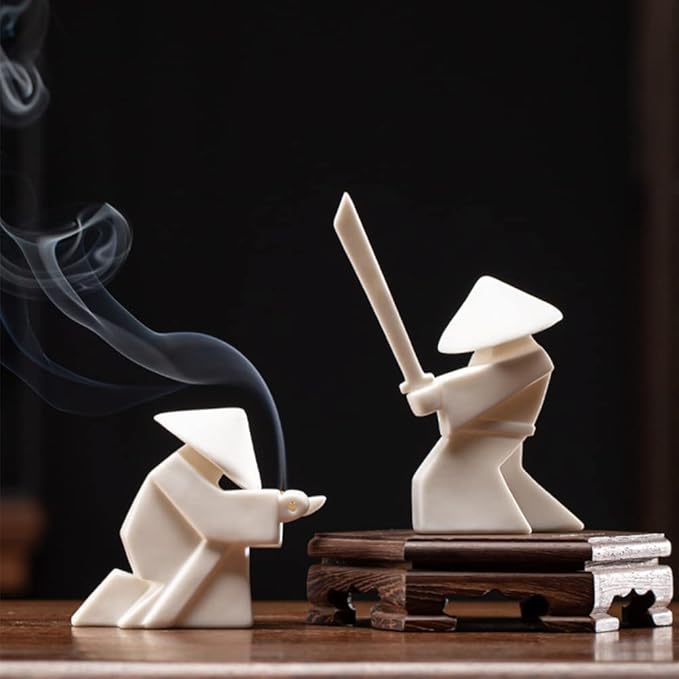 ●装飾性:お香立てセットは笠をかぶる・刀を持つ侍の外観、幾何学的要素があります。白と青二つ色が選択できます。線香を立てるとき、お香立てセット全体はシンプルで美しいです。