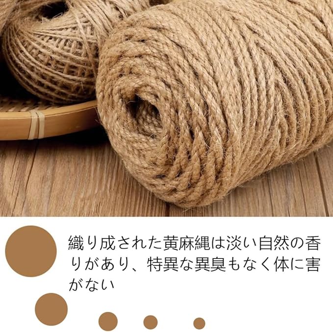 【天然素材】天然麻を採用して作られた麻ひもは環境に優しくて非毒性で分解できて、摩耗性が優れます、ペットと子供がいる家庭も安心にお使えます。天然麻素材は丈夫、100%品質合格で再利用も可能です。