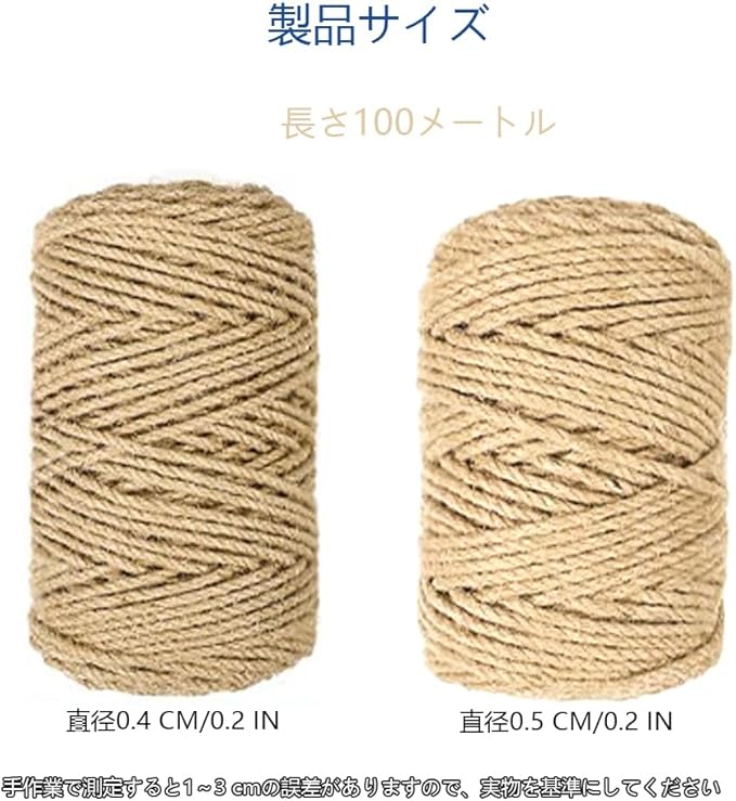 【幅広い】長さは100m、この麻紐はインテリアからアートや工芸品の包装、遊具、キャットタワーの爪とぎ用、農園芸 用、荷物梱包、装飾、一般作業まで幅広い用途で使用できます。