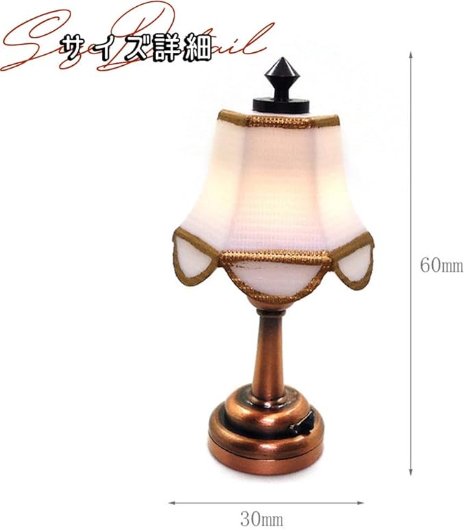 1/6 ドールハウス/ミニチュアの小物として大活躍する、実際に点灯するスタンドライトです。 【サイズ】幅3 高さ6cm