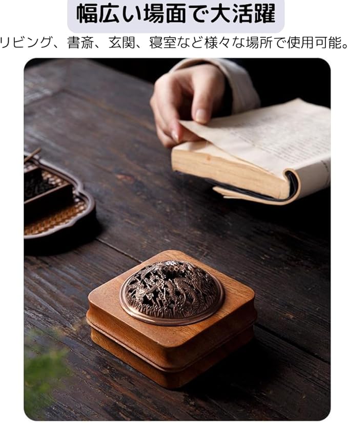 【幅広い使用用途】仏教寺院、茶道教室、ヨガ、オフィス、書斎、レストランなどでの使用はもちろん、好きな香りを焚いて、癒やしの時間を楽しむこともできます。