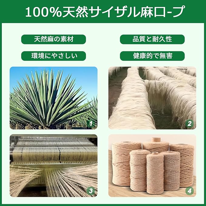 【天然素材】天然麻を採用して作られた麻ひもは環境に優しくて非毒性で分解できて、摩耗性が優れます、ペットと子供がいる家庭も安心にお使えます。天然麻素材は丈夫、100%品質合格で再利用も可能です。