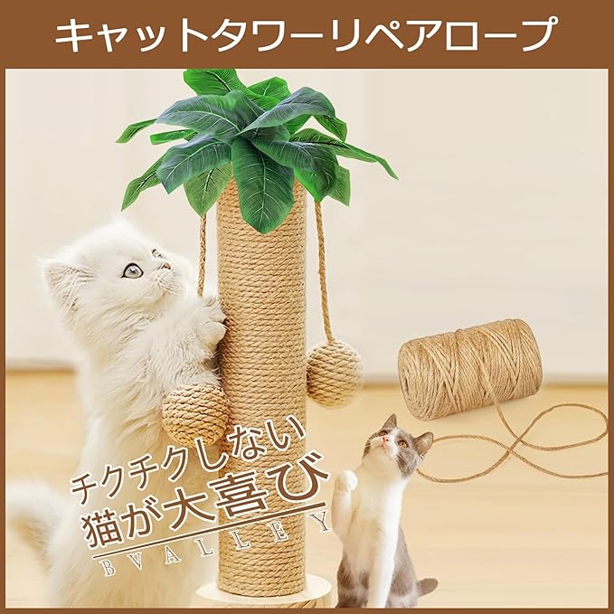 BValley 6mm x 60M 麻ロープ 麻縄 麻紐 天然繊維 麻ひも リペアロープ 猫タワー スクラッチャー 爪研ぎ 園芸 手芸 DIY アウトドア 梱包,麻縄はボロボロになったキャットタワーの爪とぎ場所が補修できます。園芸DIY、花瓶、壁飾り、手芸や飾りに適しています。家のテーブルやソファーの足、水道管、角柱、階段手すりなどの家具に巻きられて、引っかかれるを防ぐ効果があり、家具などを保護できます。