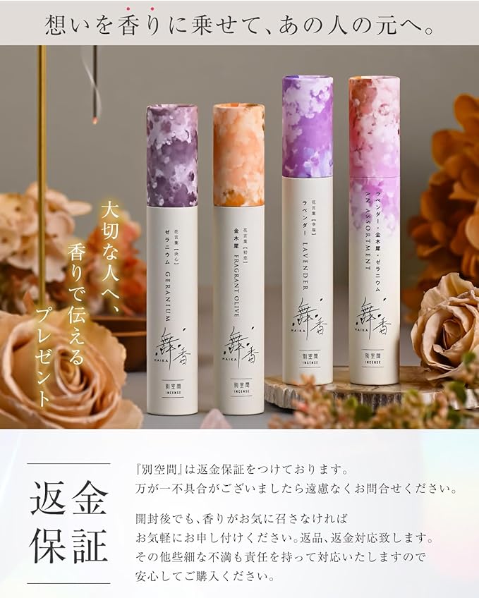 ・【舞香 お香3種】舞香の手作りのお香3種類を一つに。金木犀、ラベンダー、ゼラニウムが各種入って、毎日違う香りを楽しめます。