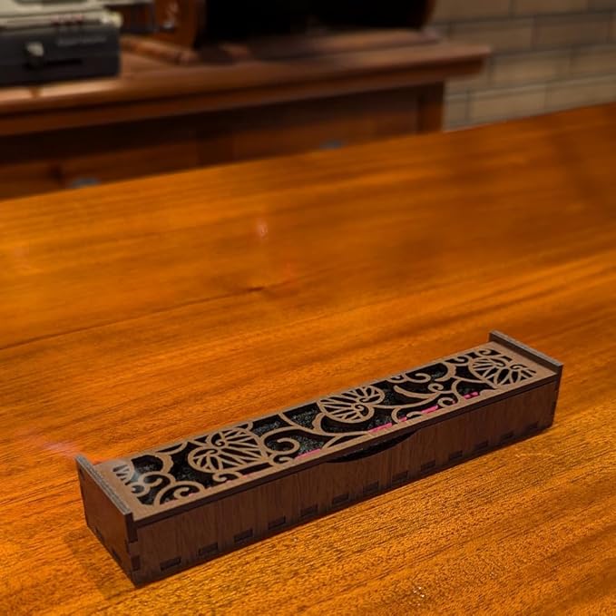 美しいデザインと温かみのある素材感。レーザー加工で繊細に施された模様が特徴のMDF製横置き香炉。 ナチュラルな風合いがレトロモダンなインテリアにもよく映えます。装飾品としても魅力的です。