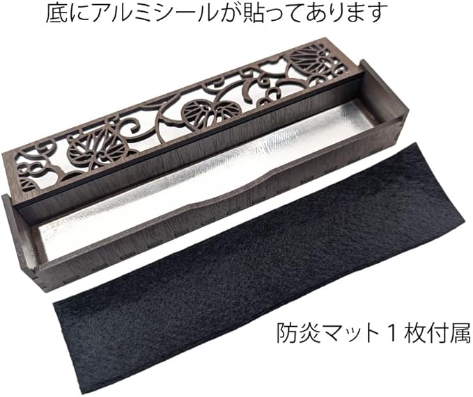香りラボside field 横置き香炉 線香立て 香炉 葵文様 dark color 木目調 MDF