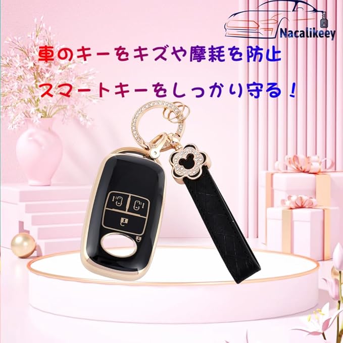 [Nacalikeey] キーケース適合トヨタ ライズ ルーミー キーカバー適合ダイハツ ロッキー トヨタ ライズかわいい梅の花キーケースト適合ダイハツ ロッキー さくらキーケース (4ボタン、ブラック) | KAZESHOP