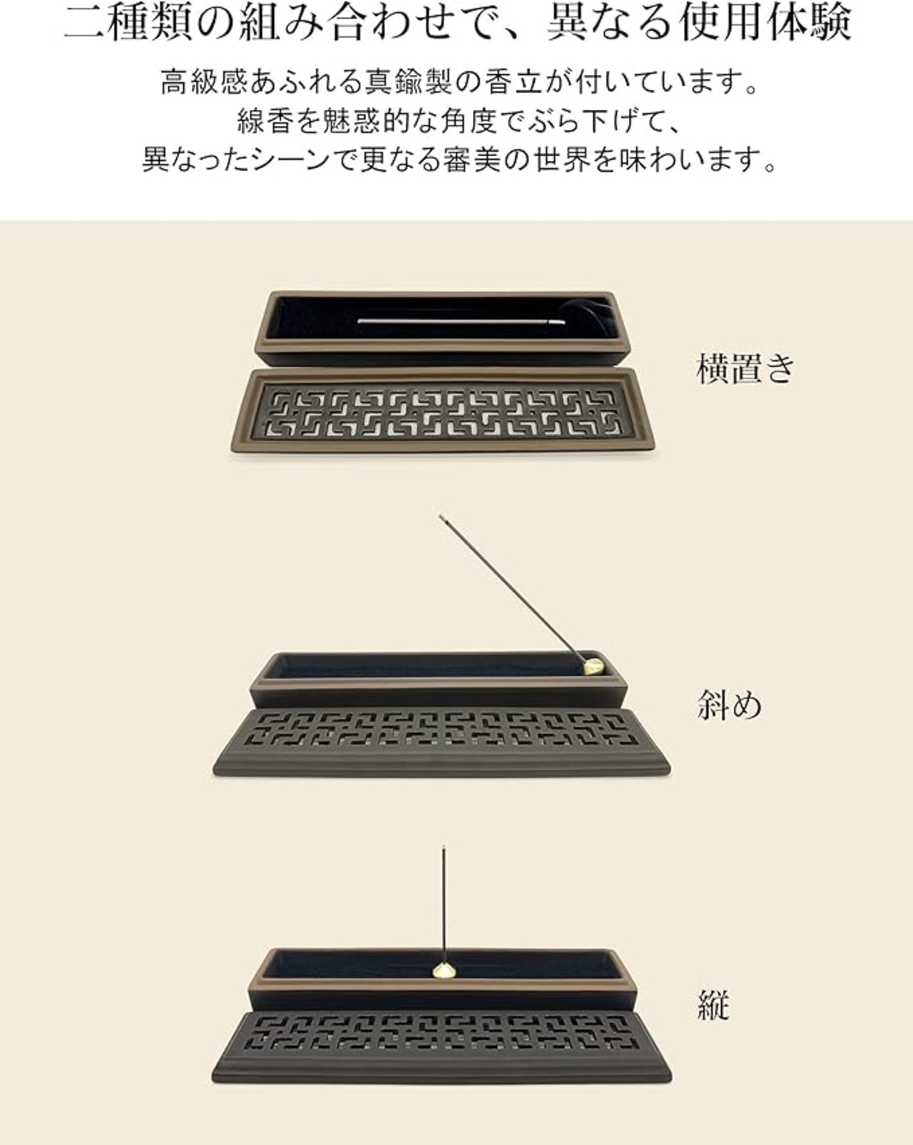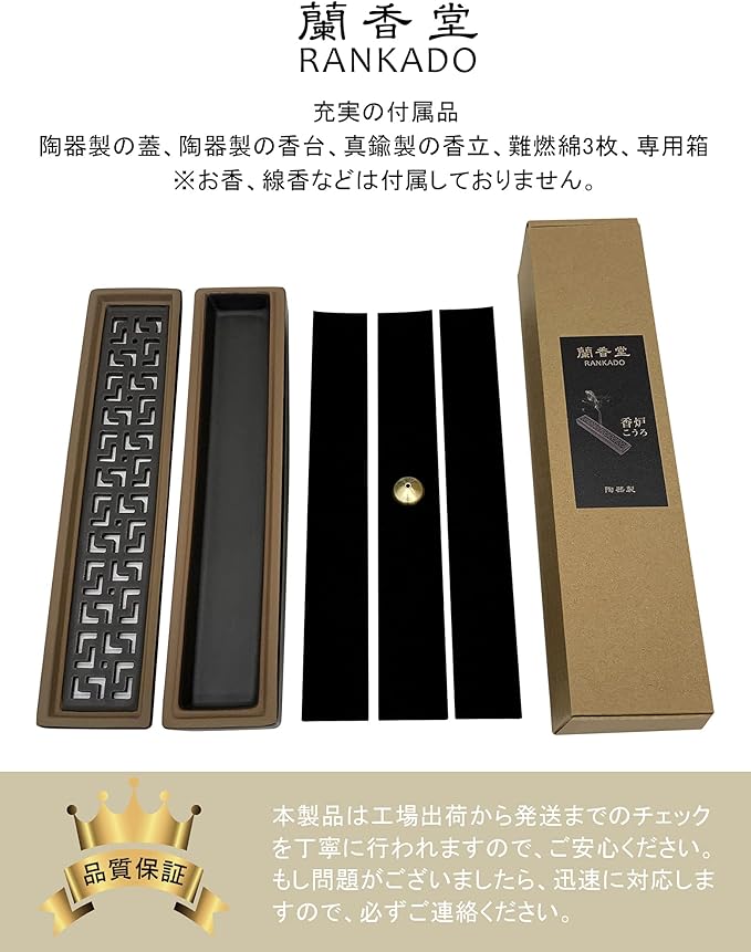 ✅【セット内容】専用箱、陶磁器製の蓋、陶磁器製の香台、真鍮製の香立、難燃綿3枚。サイズ:長さ26cm 幅5.8cm 高さ5.3cm。重さ:約470g。原産地:中国。