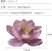 ●仕様:お線香一本挿し蓮の花型の香炉。●素材:セラミック。●工芸:手つくり、高温で焼成され。●カラー:ピンク。●サイズ:直径7.5cm、高さ4cm、お香立て穴の口径:3mm。