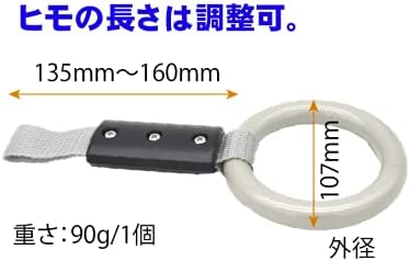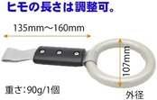ヒモの長さは調整可能。ネジでしっかり固定するタイプです。 *注:ベルトの止め部分の色は状況によって変わることがあります。現在の在庫はトップ画像の通り、つり革と同じホワイトグレーです。