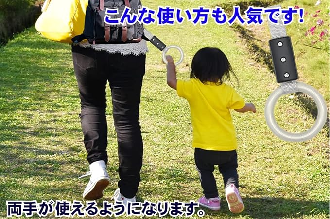 お子様とのお出かけに、リュックに取り付けてつかまらせるようにすると両手が使えるようになって便利です。お子様も大喜び。