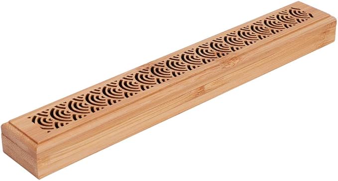お香立て 横置き香炉 線香炉 線香皿 楠竹製 不燃綿付き 蓋付き 木製 香炉 透かし彫り お香入れスタンド 携帯便利 薫香炉 寝かせる 薫香皿 リラックス 沈静 瞑坐 瞑想 和風古典 茶道 香道 仏壇料亭用 香炉ボックス 水波模様 | KAZESHOP