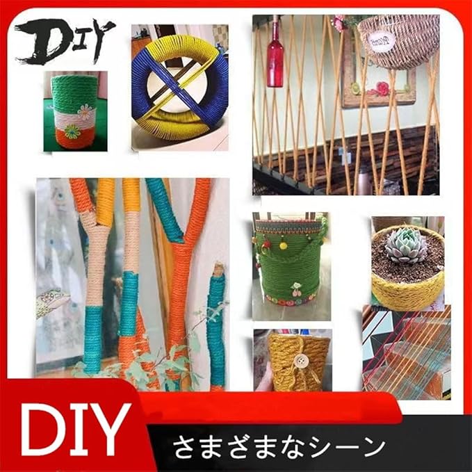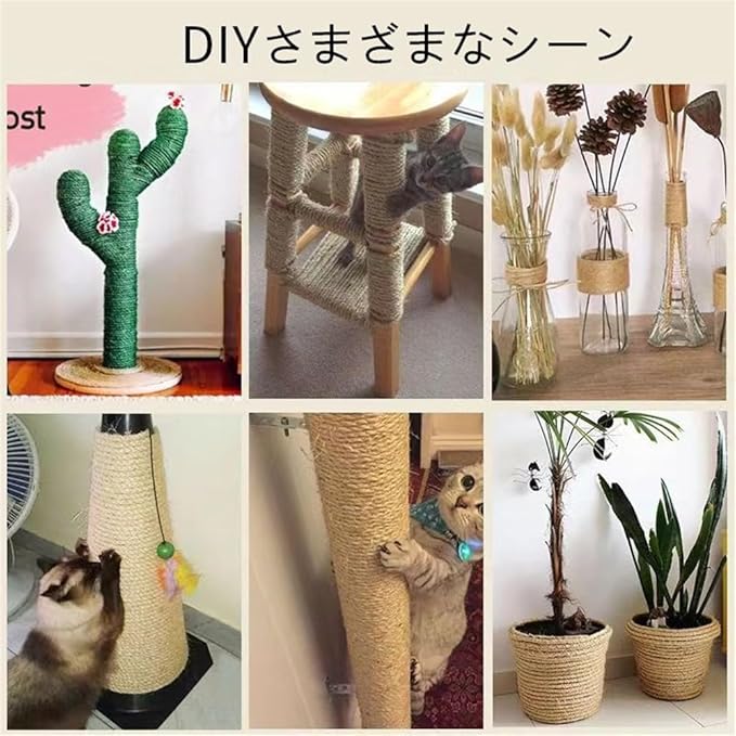 【用途】この麻紐はインテリアからアートや工芸品の包装、遊具、キャットタワーの爪とぎ用、農園芸 用、荷物梱包、装飾、一般作業まで幅広い用途で使用できます。