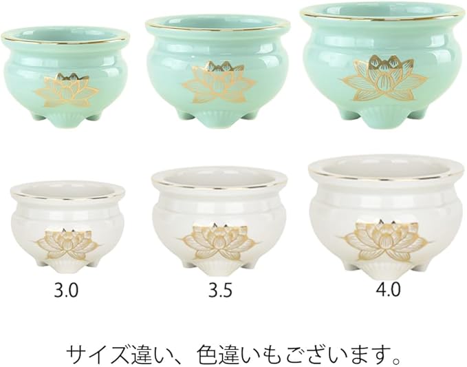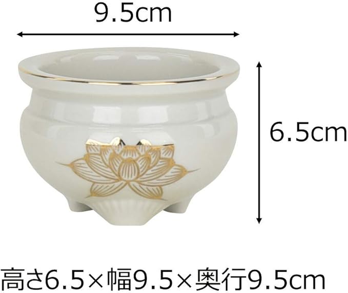 仏様へお線香をお供えするための香炉です。白地に金の蓮が描かれた伝統的なデザインの陶器製の香炉です。