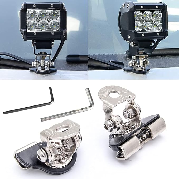 【パッケージ内容】専用取り付けステー 2個+六角レンチ 2個が付属。LEDライトバー取り付けブラケットを即時設置可能。作業灯/フォグランプ/ランニングライトなど、多様な照明器具に対応。カバーの厚さ6 mm以下の板に使用する。