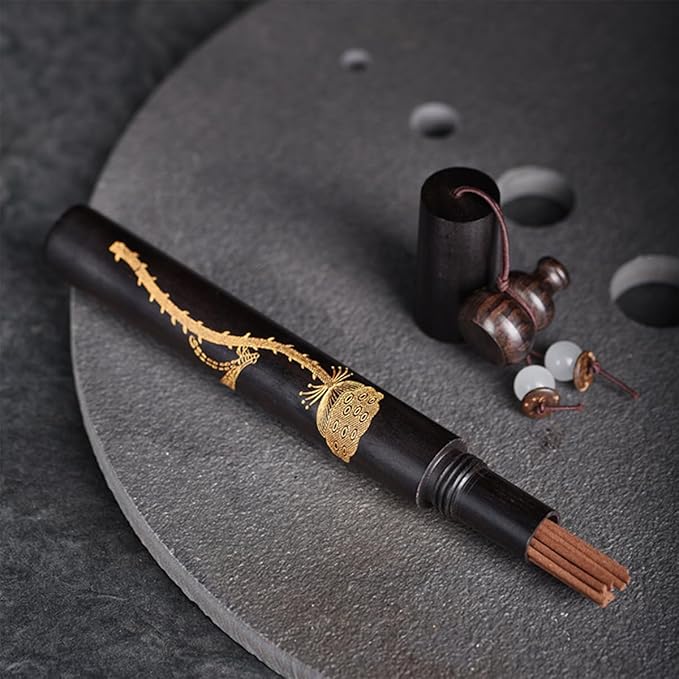 天然の黒檀木、頑丈で耐久性のある、非常にシンプルでスタイリッシュで、環境に優しい。線香筒の底には線香挿し台が付いており、外出時の使用がより便利で。
