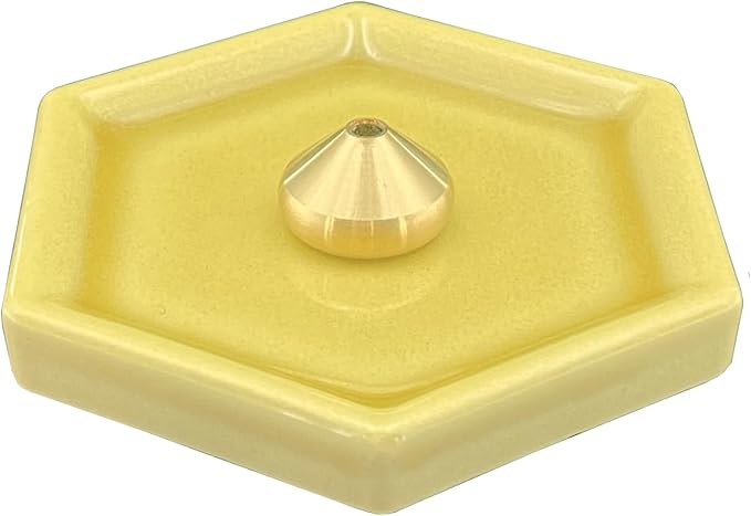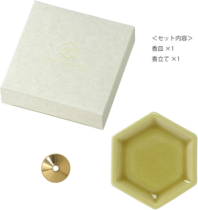 ●伝統的な美濃焼タイルの艶やかな発色が美しい六角形の香皿と、ゴールドの真鍮製香立てのセットです。