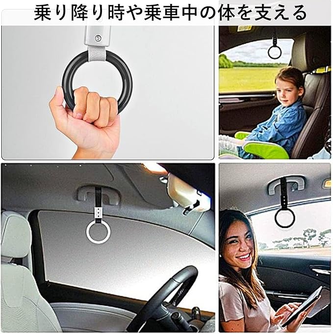 【つり革のように使用することも可能】ワンボックスカーや車高の高い車種など、車に標準装備されているアシストグリップでは手が届きにくい、といった場合に取り入れることで、つり革のように掴んで使用できるようになるため便利です。