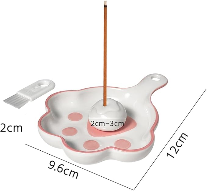【仕様】猫の足飾り付きの皿・お香立て、●素材:セラミック。香皿は陶器製、高品質な粘土に焼き、皿の猫の足跡は下絵付けをすることです。●サイズ:お皿:9.6*12*2cm。トマトのお香立て:直径2-3cm。ポアサイズは3mm以内の線香に適用。●パッケージは以下を含みます:お香立て*1+皿*1+ブラシ*1。(お香は含まれておりません)