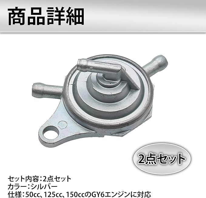 セット内容:2点セット カラー:シルバー 仕様:50cc、125cc、150ccのGY6エンジンに対応 ※モニターの環境等により、色の見え方に若干差が生じる場合がございます。