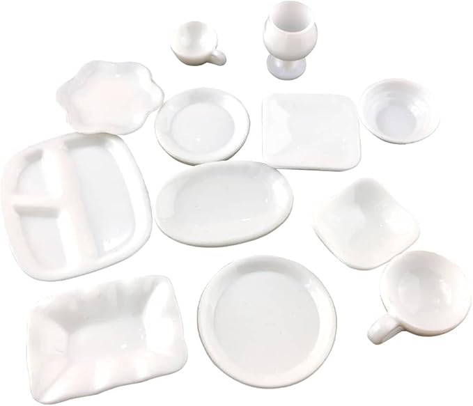 moin moin ミニチュア 1/12 ドールハウス 食器 12点セット 小物 飾り インテリア ホワイト 白 カトラリー 皿 プレート ドール 人形 陶器 2207mini2 | KAZESHOP