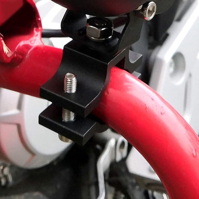 【適用範囲】:汎用(20-29mm径パイプに挟み込む可能)特に小型LEDライトを搭載するのがおすすめですが、バイクがクールに見えますから!