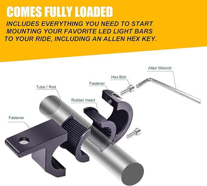 幅広い用途: ユニバーサル水平クランプ取り付けブラケットは、ほとんどのスポットライト/フォグライト/ドライビングライトまたはライトバーと互換性があります。 ほとんどの車、車、トラック、ボート、農業用車両などに取り付けるのに適しています。