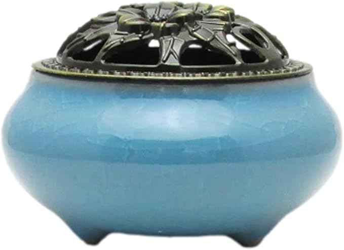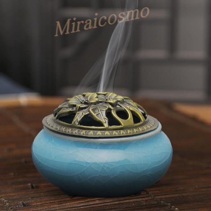 心を落ち着かせてくれる色の香炉、古銅色の蓋、香立金具のセットです。