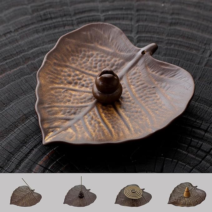 【和モダンな葉っぱ型デザイン】自然の温もりを映した葉っぱ型デザイン。陶器製の上品なインテリア香立てで、和室・洋室・玄関・寝室まで幅広く調和します。