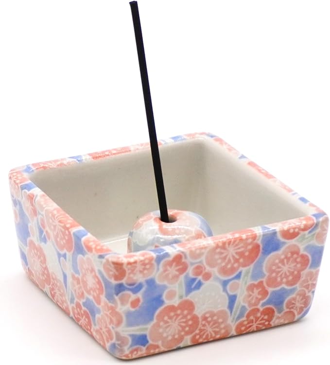 国産品 美濃焼の角型陶器香炉の部屋香線香立てになります。 図柄は梅柄。 火の取り扱いに注意してください。 通常のお線香は、1本を3分の1に折り使用してください。