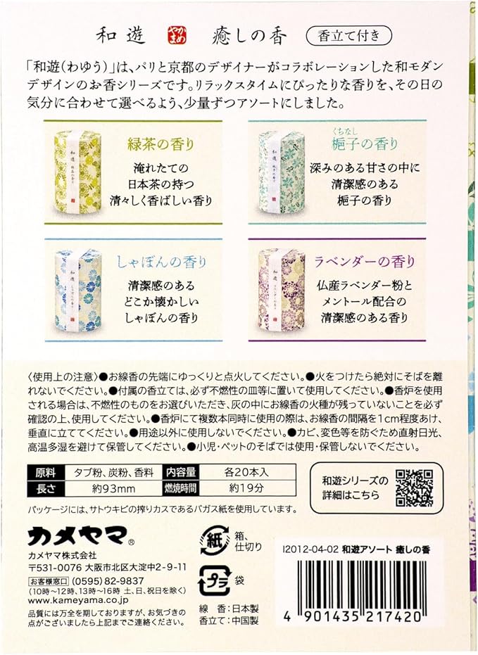 4種の香りを少しずつ楽しめる香立て付きのアソートセットです。