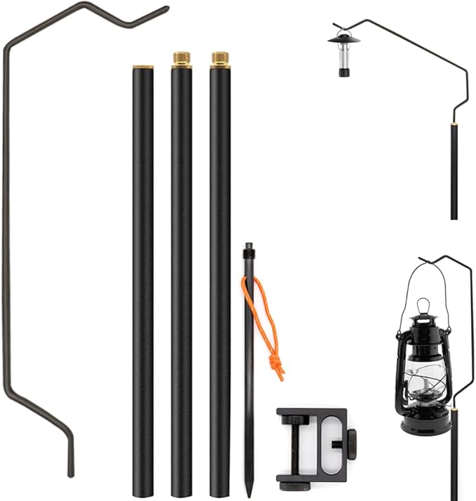 【軽量化】ランタンスタンドは3段のねじ込み式ポール+フックで設計されており、取り付けたままのサイズは132cmで、重量は約300gです。従来の4つのセクション式ランタンフックに比べて、取り付けが簡単で軽量です。必要に応じて高さを調整することができ、(打ち込み式)高さの設定範囲は60cm、96cm、132cmです。ランタンスタンド テーブルと組み合わせて使用する場合、ランタンの高さを53cm、89cm、125cmに設定できる。