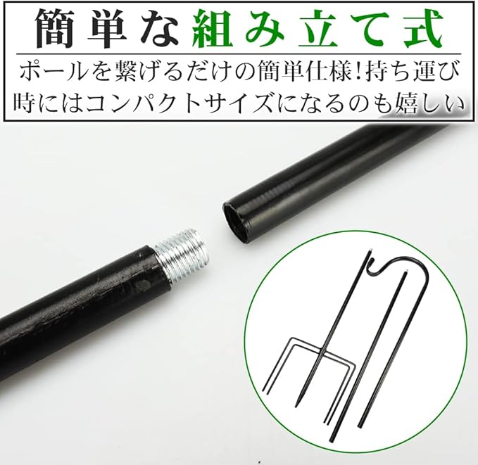 必要に応じてポールのシャフト数を調節して、高さ調節をすることが可能です。女性の方でも簡単に組み立てられるため、設置に時間がかかりません。
