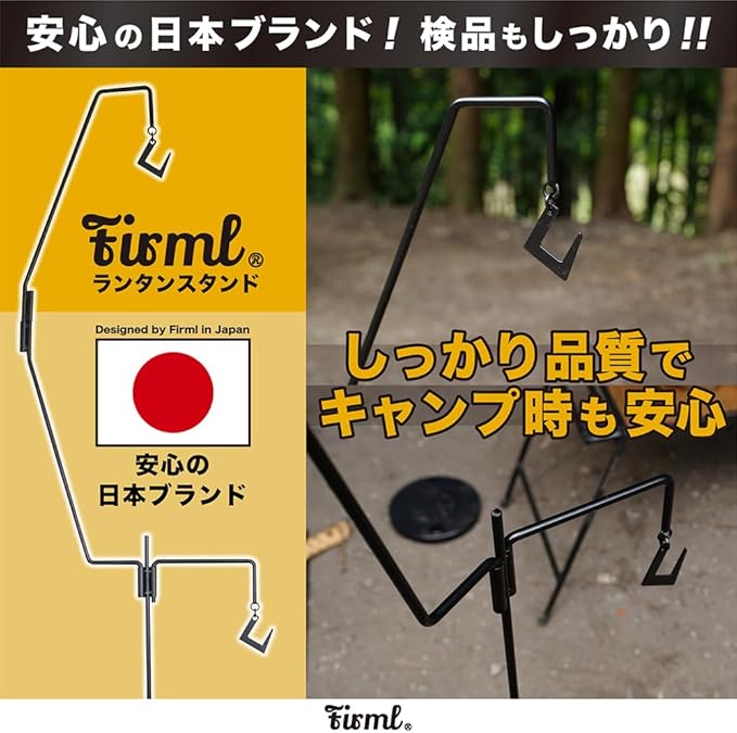 高耐久素材 高強度な鋳鉄で作ったランタンスタンドは太さ9mmのポールがしっかりと全体を支え、耐荷重もあり揺れもなく程よい安定感があります。厚くて頑丈なフック付き。様々なキャンプスタイルが楽しめます。