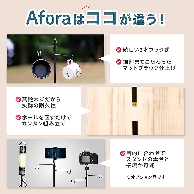 【圧倒的カスタマイズ性】雲台セットとスマホ、ランタン、カメラなどと接続できるのが人気ランタンスタンドの理由です。フィールドラックやアウトドアライトも相性抜群!※雲台セットはオプションです