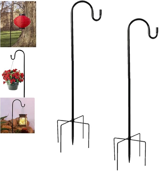 ランタンや提灯、鉢植え、巣箱などを釣るしておけるガーデンシェパードフック2個セットです。 簡単にツールなしで組み立てられる構造です。ネジ状の部分を差し込んで回して固定するだけです。