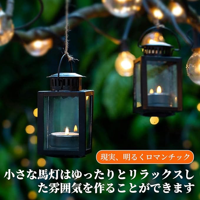 【高品質素材】耐久性とスタイリッシュなデザイン アイアンフレームと透明度の高いガラスを使用したキャンドルランプ。サビに強いマットブラックラッカーが高級感を演出し、片手で持てるほどの軽さ(150g)。ガラスが柔らかな光を拡散し、ロマンチックな雰囲気を演出します。