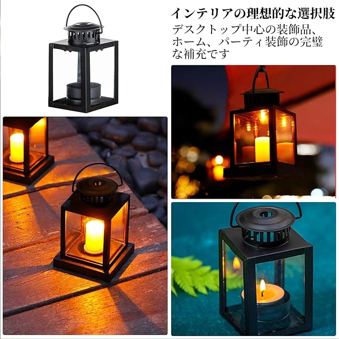 Zhejia キャンドルランタン キャンドル ミニパティオランタン カメヤマ ランタン 用燭台 耐熱ガラス付き おしゃれ レトロ 照明 インテリア 寝室 リピング オフィス バー 飾 プレゼント(ブラック 10.1*6.2cm) | KAZESHOP