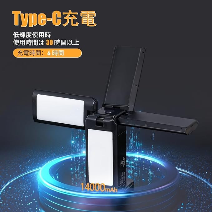 長時間の冒険に適した長持ち電池:14000mAhの大容量バッテリーを搭載しているので、低輝度モードで最大100時間の連続使用が可能。長時間の屋外活動に最適です。付属のTYPE-Cケーブルで簡単に充電でき、屋内外を問わずいつでも行動できる準備が整っています。