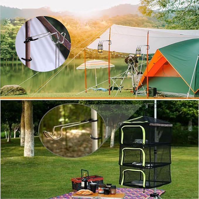 【ランタンハンガー2本セット】さまざまなツールを吊り下げられる便利なアイテムです。、ランタンハンガー ポール使用中に外れたり変形したりしません。