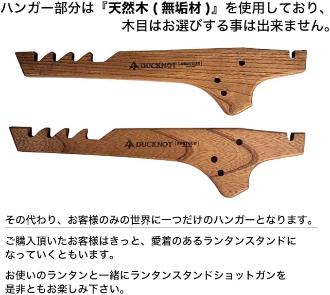 無骨に仕上げたランタンスタンドスタンドショットガンの、台座セットが登場しました! 台座セットでは、ランタンスタンドとしてだけでなくハンガーラックとして室内での使用や、フラワースタンドとしてエクステリアでの使用も可能です。 色々な場所でショットガンをお楽しみ頂けます! ※本体・台座ともに「JIS規格印字無し」「JIS規格印字あり」をランダムでセットしています。 黒皮鉄でできたポールにまるでショットガンのような木製ハンガー。 無骨な佇まいで静かな夜に火を灯します。 蝶ネジで簡単に高さ調節が可能。 木製ハンガーには天然木(無垢材)を使用しているため、唯一無二の木目をお楽しみいただけます。 木製ハンガー、外ポール、内ポールの3パーツに分解することができるので、すっきり持ち運び可能です。 専用収納ケースも販売中! ★現在日本で販売されているランタンの中で最も大きいと言われる<b>「ペトロマックス HK500」</b>も対応! リフレクター付きでも使用可能です!