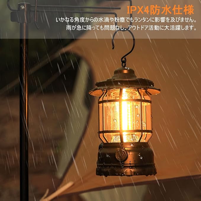 レトロ風 ランタン・Cyrmiug 優しい 暖色 雰囲気作り ランタン 無段階調光・高輝度「30枚COB LEDライトを採用」・防滴仕様・Type-C充電式・フック付き 懐中電灯、急照明用 キャンプ アウトドア 防災 地震 台風 停電対策 緊急 非常用 「日本語取扱説明書」 | KAZESHOP