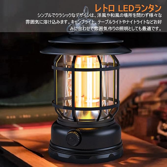「 レトロ LEDランタン 」 照らしすぎず落ち着いた雰囲気を味わえ、本当に安全、静か、環境にやさしいLEDレイルロードランタンまたは雰囲気に溢れたレトロランタンです。キャンプライト、テーブルライトやナイトライトなどお好みに合わせて雰囲気作りの照明としても最適です。