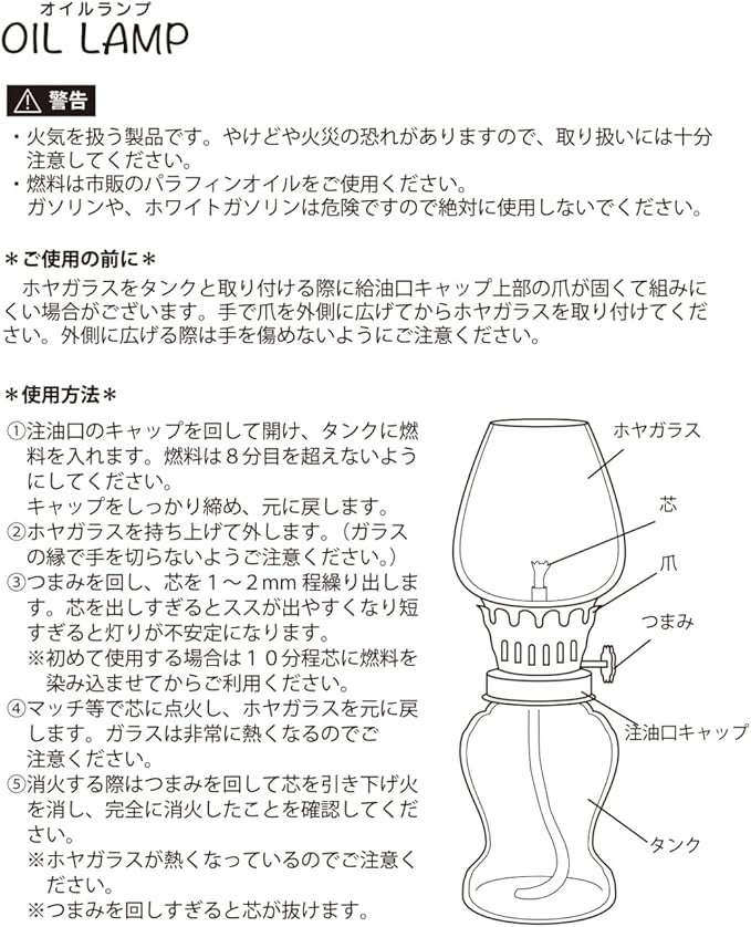 ゆらゆら揺れる炎に心癒されるオイルランプです。お部屋でもアウトドアにもオススメ。