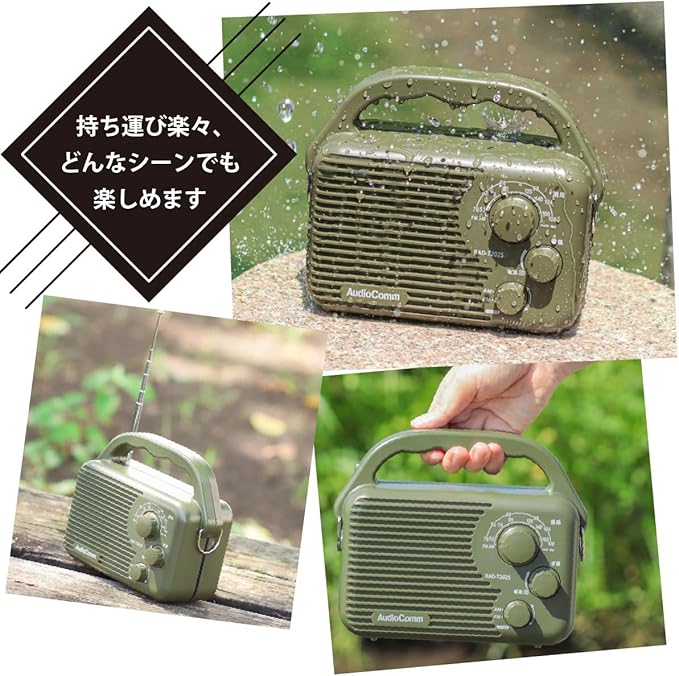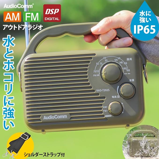 オーム(OHM)AudioComm ラジオ 防水 AM/FMアウトドアラジオ 電池式 IP65 ポータブルラジオ ワイドFM 防災ラジオ RAD-T202S 03-0988 オーム電機 | KAZESHOP