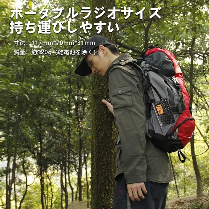 小型ラジオ&電池式:本機はコンパクトでポッケトサイズで、持ち運びが便利です(幅117mm*奥31mm*高さ70mm)。単3型乾電池2本(別売)及び3V電源ソケットアダプタ(別売り)で給電可能です。ブランド電池で40H連続放送(中音量)可能です(乾電池は別売)。日常散歩、学習、災害の時でも適用します。