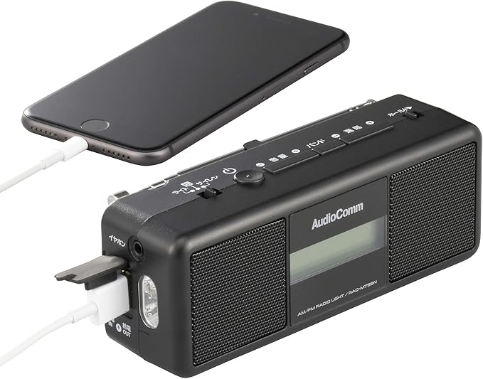 特徴 スマホ充電, ワイドFM, 充電式, 懐中電灯内蔵