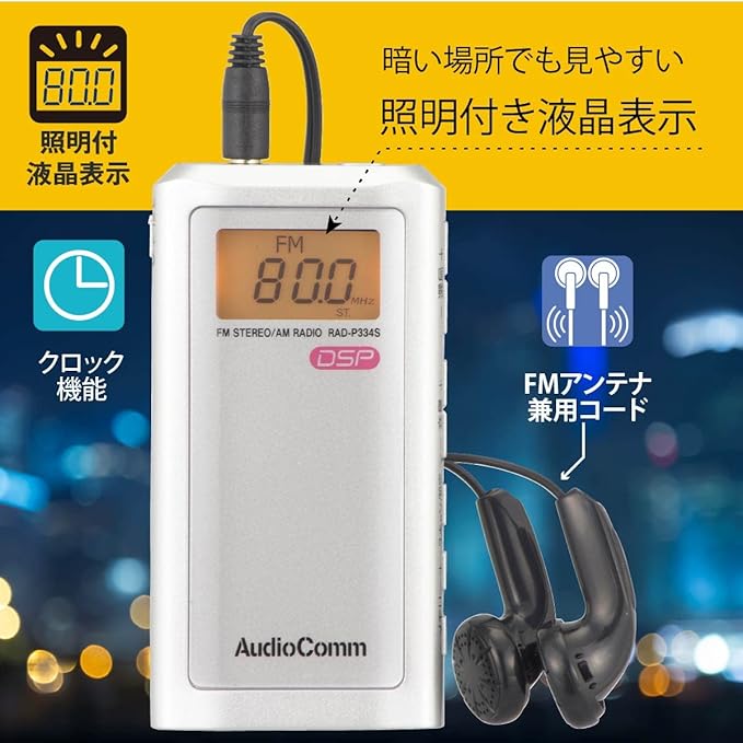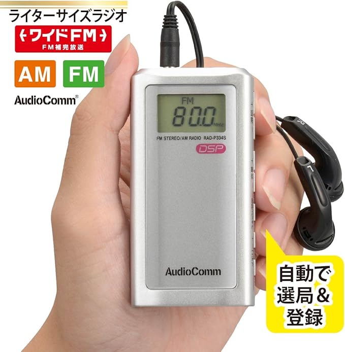 ●ライターサイズのイヤホン専用デジタルポケットラジオ ●DSPデジタルチューナー内蔵でクリアな音声 ●感度の良い局を自動選局、AM/FM各20局まで自動登録 ●照明付き液晶表示 ●デジタル音量表示 ●クロック機能 ●ワイドFM(FM補完放送)対応 ●誤操作防止機能付き ●ステレオイヤホン付属 ●本体カラーはシルバー