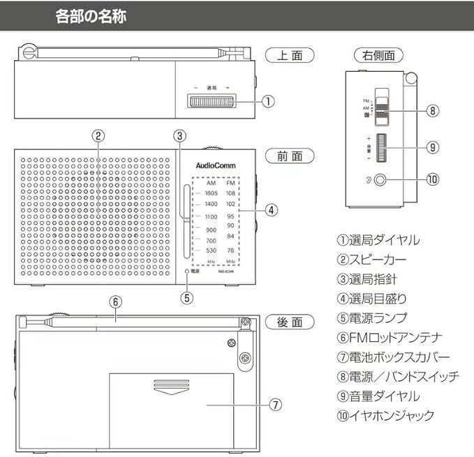 ■ アンテナ:AM…フェライトバーアンテナ(内蔵)、FM…ロッドアンテナ