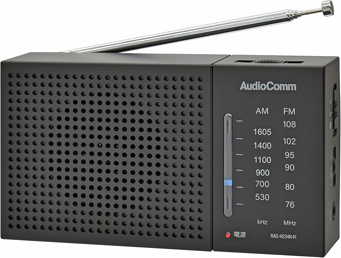 ◆アンテナ:AM…フェライトバーアンテナ(内蔵)、FM…ロッドアンテナ ◆イヤホン端子:φ3.5mmモノラルミニジャック ◆外形寸法:幅125 高さ70 奥行39mm(突起物含まず) ◆質量:約165.5g(乾電池含まず) ◆付属品:保証書、取扱説明書